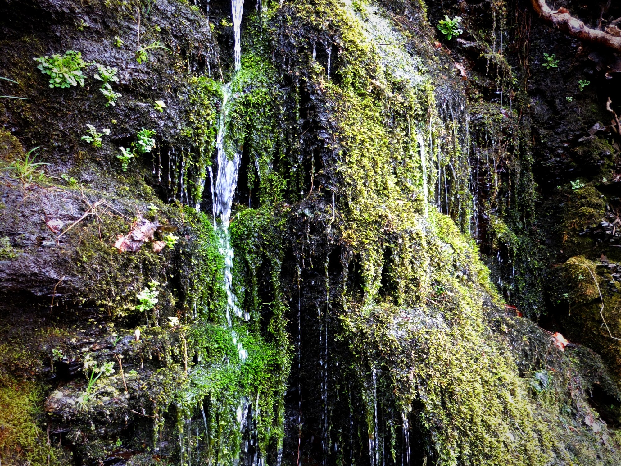 Er kam aus Heiligenhaus, wo das Leitungswasser sehr kalkhaltig ist und benutzt das Quellwasser seit 3 Jahren zum Kaffe kochen. Seine Maschine ist dank dem kalkfreien Quellwasser noch wie neu. Er berichtete auch von einer Essener Wäscherei, die sich den ganzen Lieferwagen mit Wasser zum Bügeln auffüllt. Nachdem er gegangen war wollte ich mal schauen, wie das Wasser klingt, das den Hügel entlang läuft. In dem Moos, das große Teile des Steinbruchs bedeckt, fließt das Wasser mit einem weichen Klang und machte dabei ein überraschend ploppendes Knistergeräusch.