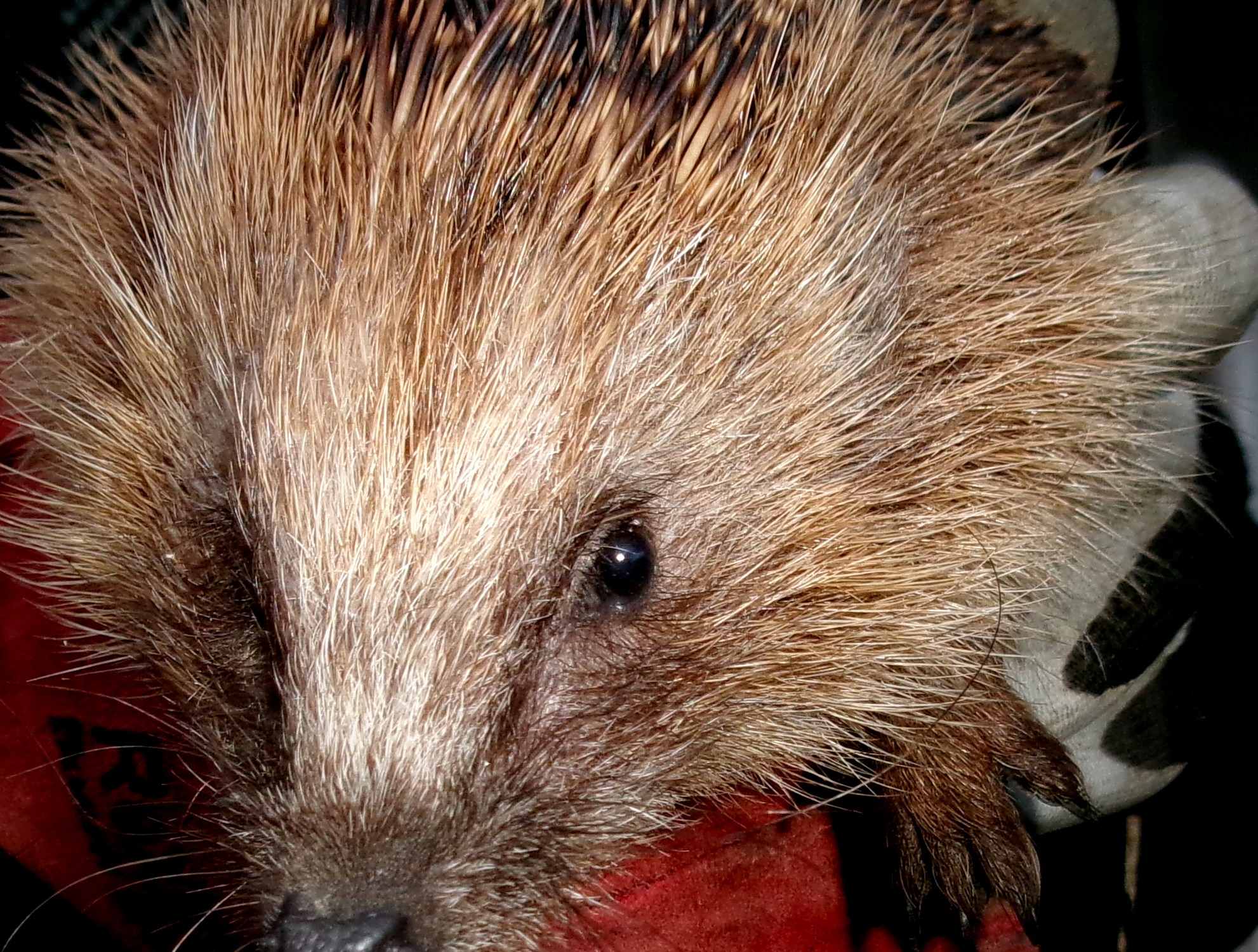 Der Igel im Bild ist ein einäugiger geretteter Igel, den ich mit einer Tierärztin zusammen behandelt und nach erfolgreicher Behandlung zurück in die Natur gesetzt habe.